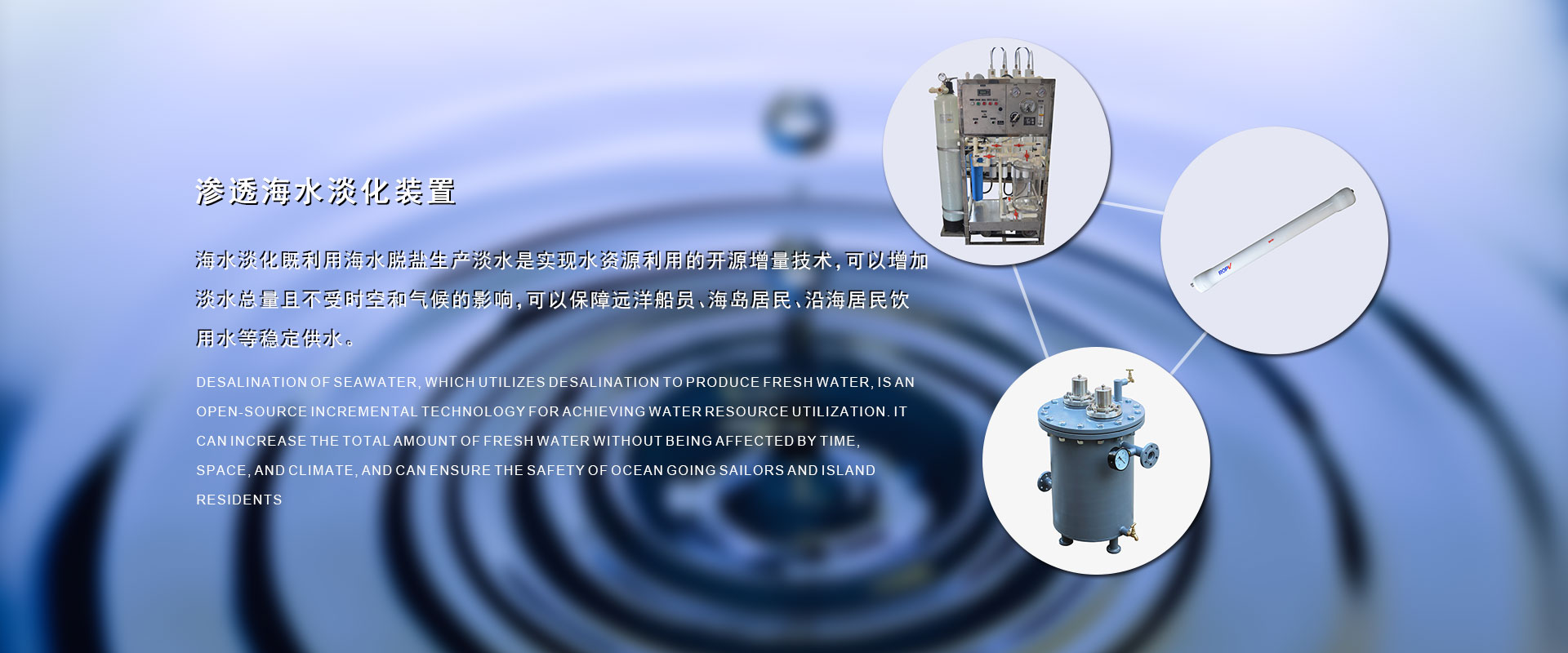 在過去的17年里我們?yōu)榇疤峁┖KO(shè)備解決了因船的續(xù)航長(zhǎng)而不能解決的淡水問題,全球的水資源越來越少,我們以改善遠(yuǎn)洋船員、海島居民的生活水資源為已任,以科技創(chuàng)新、誠(chéng)信經(jīng)營(yíng)為核心競(jìng)爭(zhēng)力。